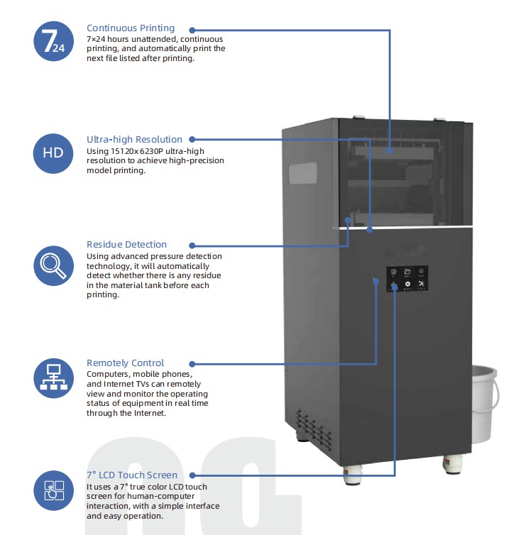 7*24 hours unattended, continuous printing, and automatically print the next file listed after printing.