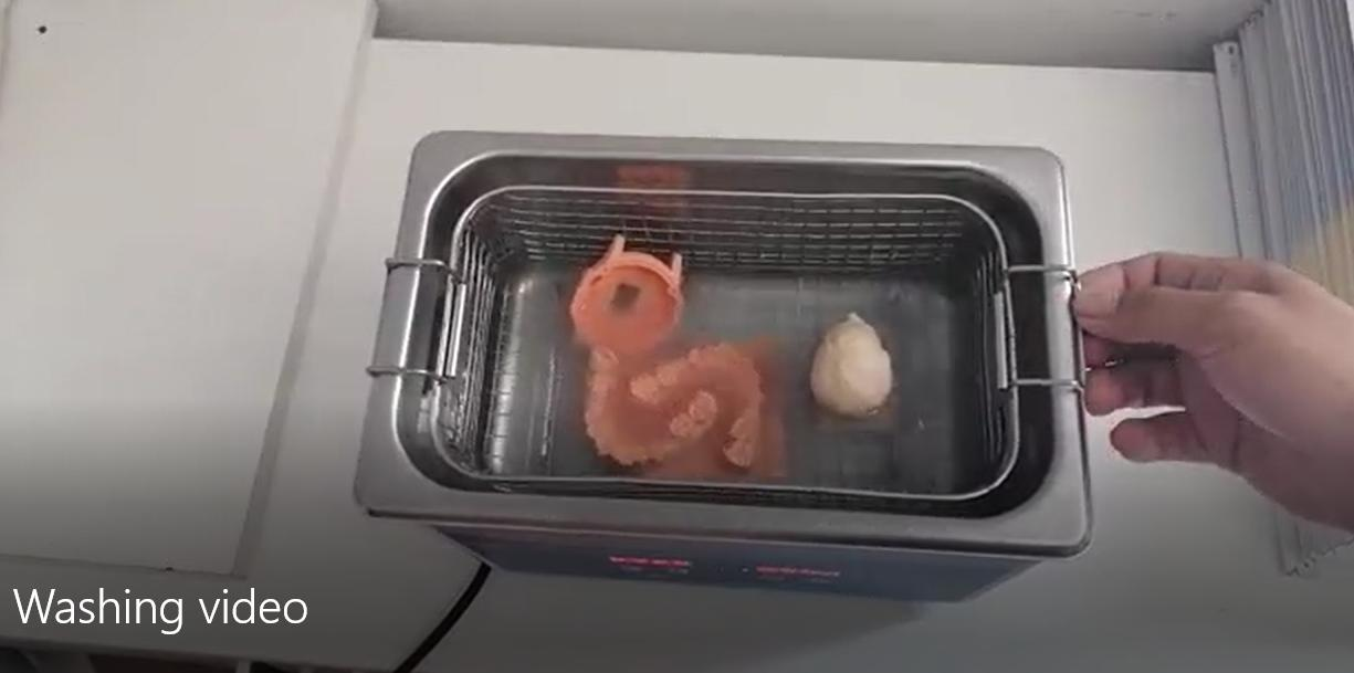 1. Put it in the ultrasonic cleaning box for 1-2min (you can remove it first and put it in the ultrasonic/do not remove the support and put the ultrasonic and then remove it)